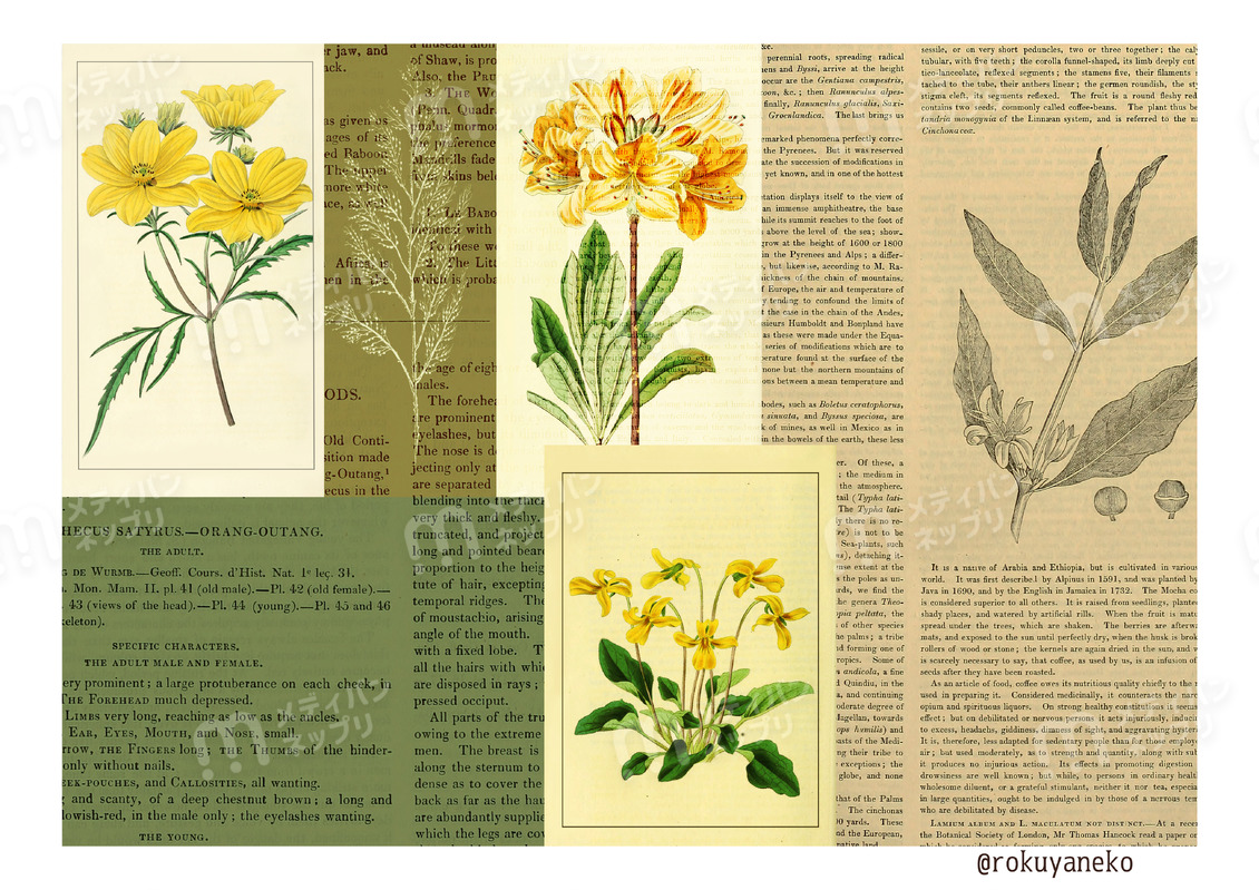 ヴィンテージやアンティークの古書をアレンジしたものや、自作のイラストを使用したデザインペーパーを制作していますご利用についてなど、詳しくはインスタやXのプロフィールのlit.linkをご覧ください