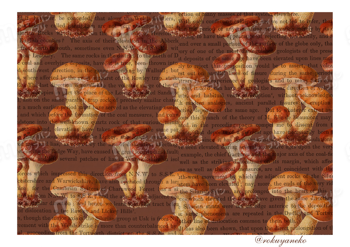 ブラウン系のデザインペーパーですボタニカル、きのこ